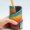 Nuestro portalápices Curpai está diseñado con la originalidad que se merece el soporte donde descansarán los útiles que darán forma a tus historias, trabajos, obras de arte,…, disfrutando de un objeto diferente desde cualquier ángulo que lo mires como si de un caleidoscopio se tratara.